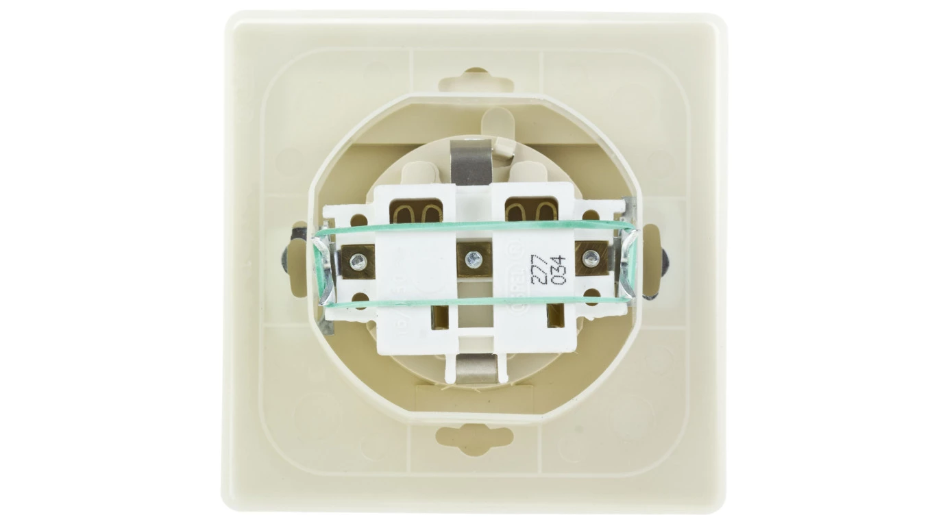 AKCENT BEŻ GNIAZDO 1X SCHUKO Z KLAPKĄ DYMNĄ IP44 ZACISKI ŚRUBOWE 16A 250V
