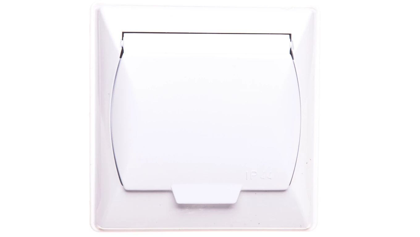 AKCENT BIAŁY GNIAZDO 1X Z/U Z KLAPKĄ BIAŁĄ IP44 ZACISKI ŚRUBOWE 16A 250V