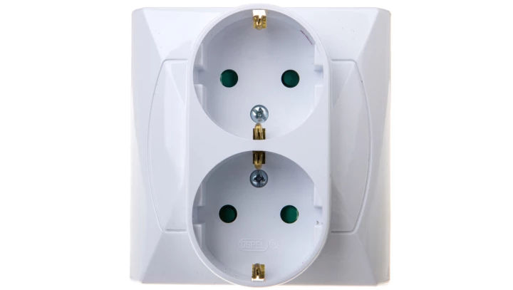 Gniazdo podwójne z uziemieniem schuko z przesłonami torów prądowych AKCENT BIAŁY o numerze katalogowym GP-2ASP/00 w kategorii Gniazda podtynkowe, Gniazda instalacyjne. Produkt wyprodukowany przez markę OSPEL, seria AKCENT.