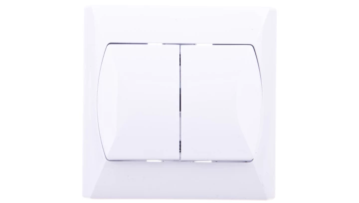 Łącznik schodowy + jednobiegunowy AKCENT BIAŁY o numerze katalogowym ŁP-9A/00 w kategorii Łączniki podtynkowe jednobiegunowe, Łączniki jednobiegunowe. Produkt wyprodukowany przez markę OSPEL, seria AKCENT.