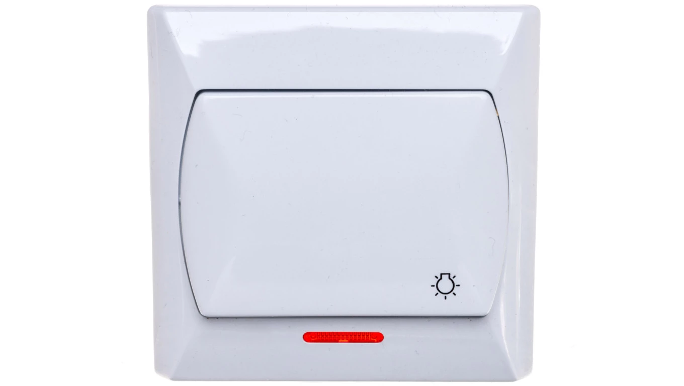 AKCENT BIAŁY PRZYCISK "ŚWIATŁO" PODŚWIETLANY POMARAŃCZOWY ZACISKI ŚRUBOWE 10AX 250V