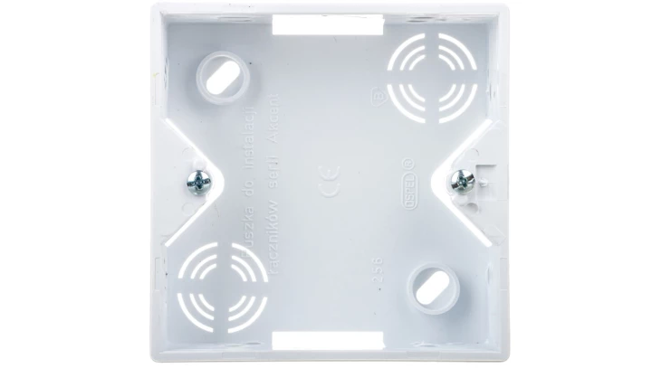Puszka natynkowa instalacyjna do łączników serii AKCENT BIAŁY o numerze katalogowym PNP-A/00 w kategorii Puszki natynkowe, Puszki instalacyjne. Produkt wyprodukowany przez markę OSPEL, seria AKCENT.
