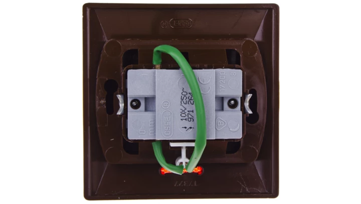 Łącznik zwierny "dzwonek" z podświetleniem pomarańczowym AKCENT BRĄZ o numerze katalogowym ŁP-6AS/24 w kategorii Przyciski podtynkowe "światło", Przyciski "światło". Produkt wyprodukowany przez markę OSPEL, seria AKCENT.