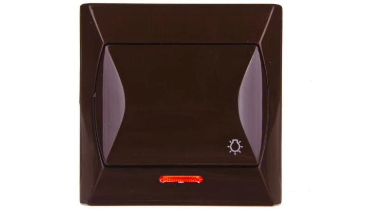 Łącznik zwierny "światło" z podświetleniem pomarańczowym AKCENT BRĄZ o numerze katalogowym ŁP-5AS/24 w kategorii Przyciski podtynkowe "światło", Przyciski "światło". Produkt wyprodukowany przez markę OSPEL, seria AKCENT.
