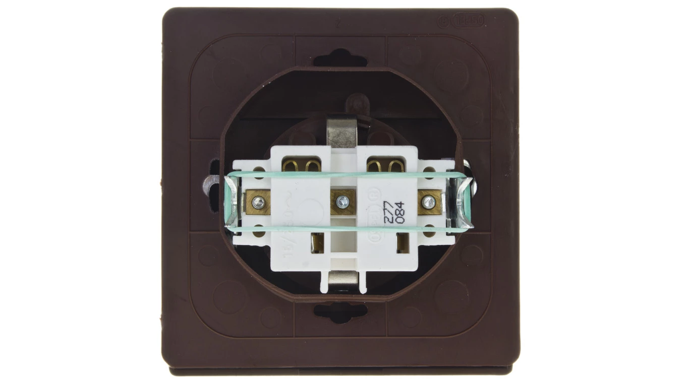AKCENT Gniazdo bryzgoszczelne z/u Schuko IP44 klapka przezroczysta brązowe GPH-1AS/24/d