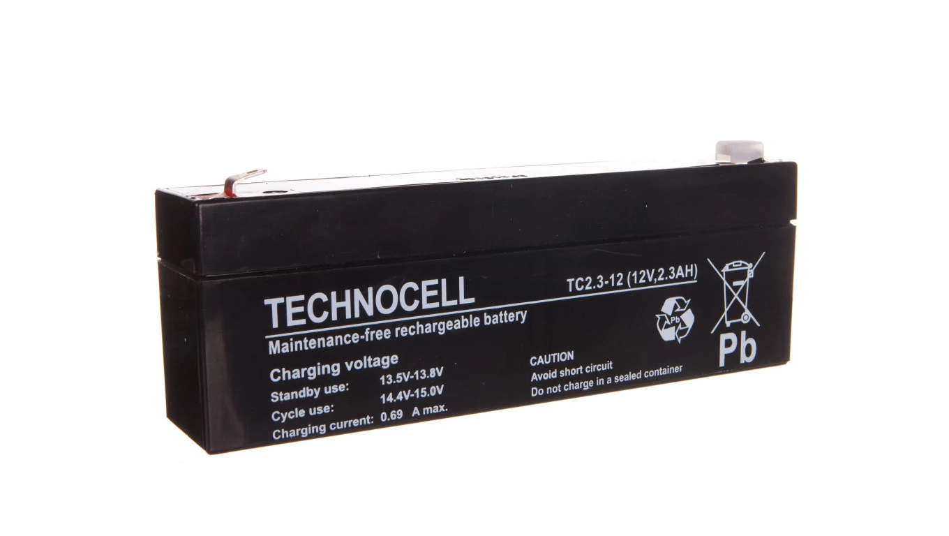 Akumulator bezobsługowy AGM 2,3Ah 12V Technocell TC 2,3-12