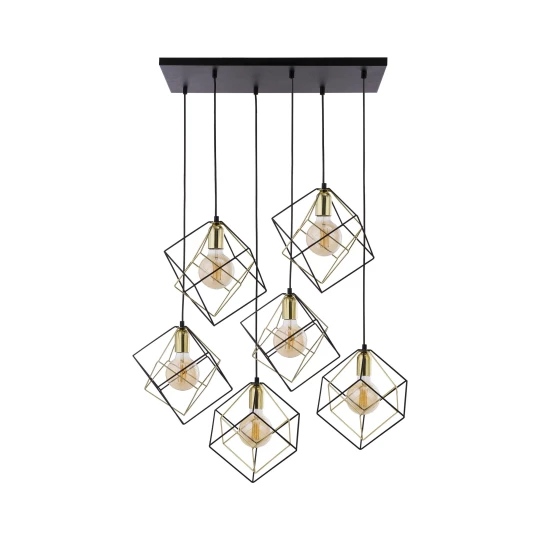 ALAMBRE CZARNY/ ZŁOTY OPRAWA WISZĄCA 6X E27/ 15W IP20 METAL