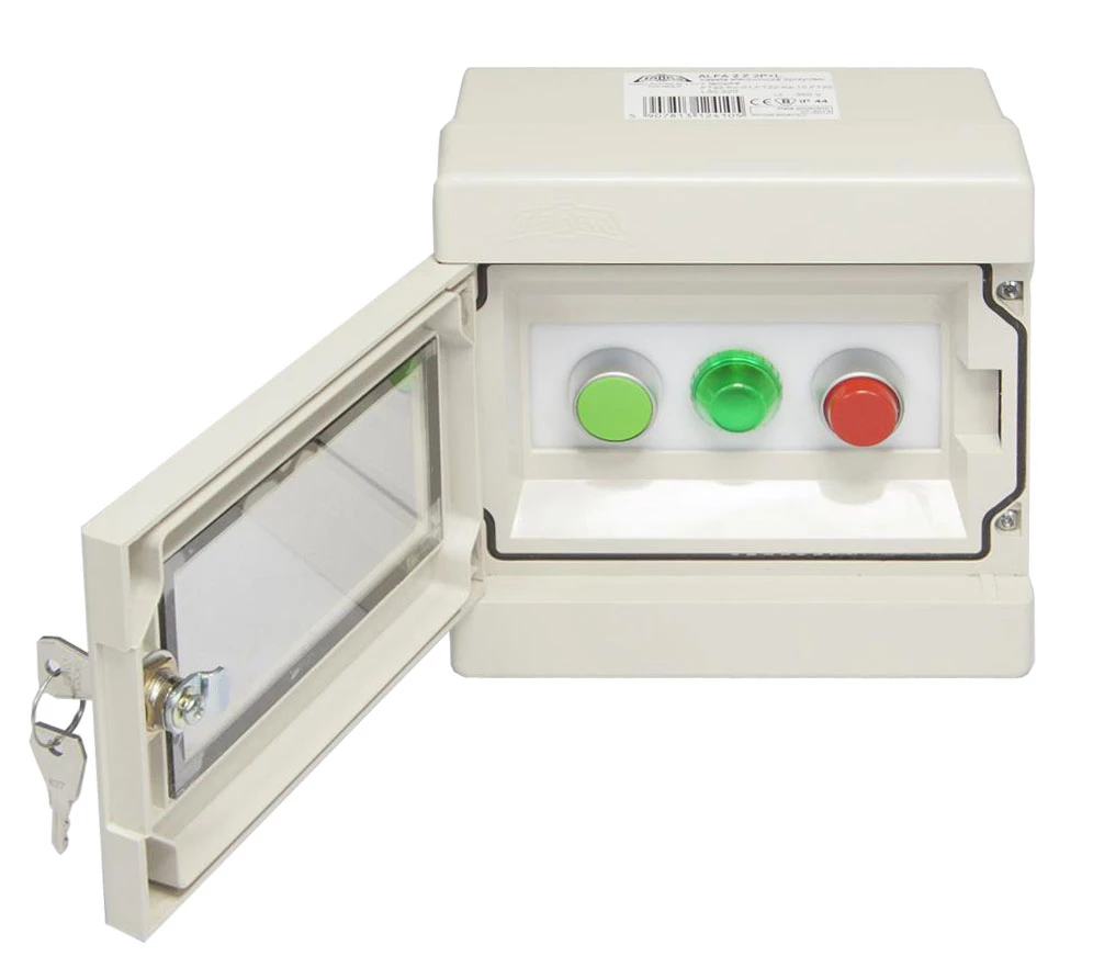 ALFA 2Z/2PL ROZDZIELNIA Z KASETĄ STERUJĄCĄ 2 PRZYCISKI LAMPKA 180X180X100 IP44 BIAŁY