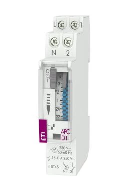 Analogowy programator czasowy APC-D1 o numerze katalogowym 002472001 w kategorii Zegary sterujące, Aparatura sterująca. Produkt wyprodukowany przez markę ETI.