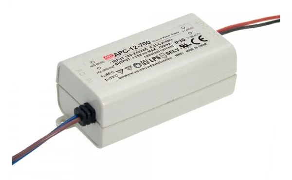 Zasilacz LED APC-12-700, 12W 9~18V 0.7A o numerze katalogowym APC-12-700 w kategorii Zasilacze do Led, Zasilacze. Produkt wyprodukowany przez markę MEAN WELL, seria APC.