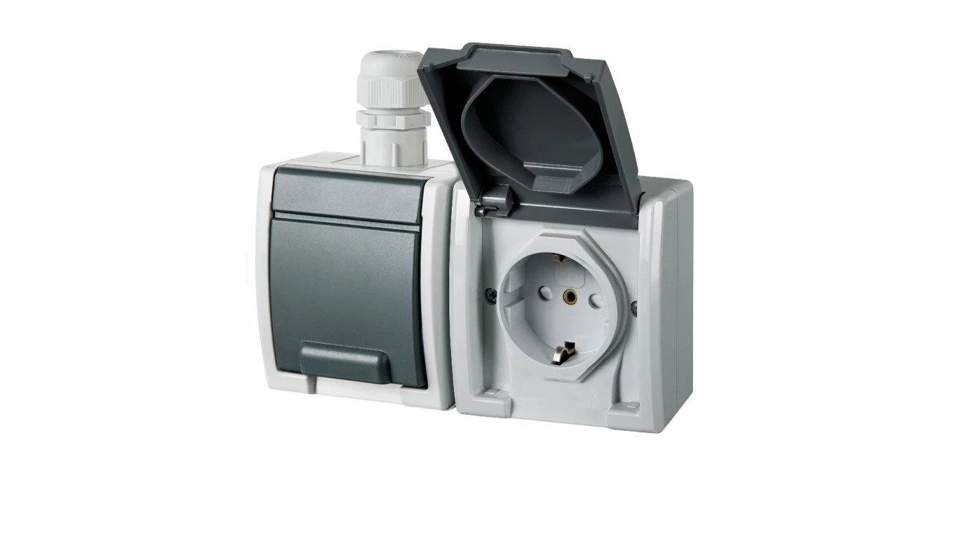 AQUANT SZARY GNIAZDO NT 2X SCHUKO Z KLAPKĄ IP65 ZACISKI ŚRUBOWE 16A 250V