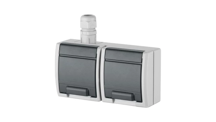 HYDRO Gniazdo hermetyczne podwójne z/u IP44 z klapką klinkier 122236