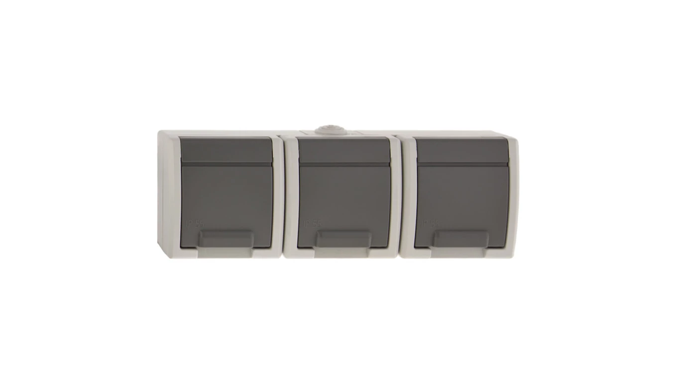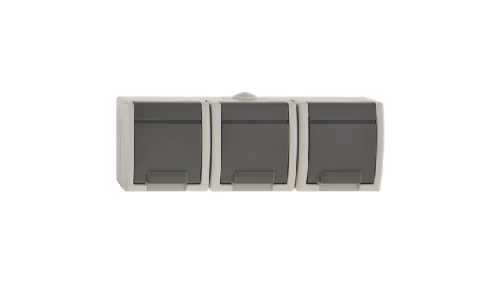 Gniazdo 3-krotne, natynkowe, IP55, szary, AQUANT o numerze katalogowym 1243-10 w kategorii Gniazda natynkowe, Gniazda instalacyjne. Produkt wyprodukowany przez markę ELEKTRO-PLAST NASIELSK, seria AQUANT.