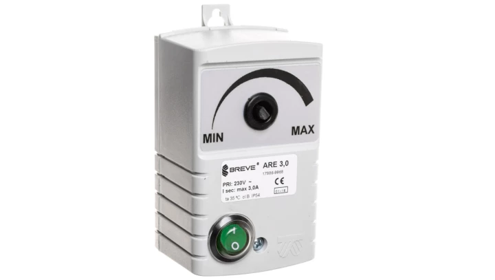 Regulator elektroniczny ARE 3,0A obrotów wentylatora IP54 o numerze katalogowym 17886-9968 w kategorii Regulatory uniwersalne, Regulatory. Produkt wyprodukowany przez markę BREVE, seria ARE.