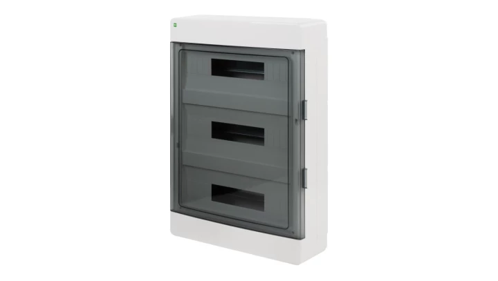 Rozdzielnica natynkowa AERO IP40 3X18 Biały drzwi dymne o numerze katalogowym   3652-01 w kategorii Rozdzielnice i obudowy>Tworzywowe natynkowe. Produkt wyprodukowany przez markę ELEKTRO-PLAST NASIELSK, seria AREO.