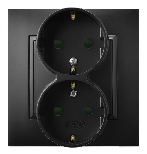 Gniazdo podwójne z uziemieniem schuko z przesłonami torów prądowych, kompletne z ramką, czarny metalik ARIA o numerze katalogowym GP-2USP/33 w kategorii Gniazda podtynkowe, Gniazda instalacyjne. Produkt wyprodukowany przez markę OSPEL, seria ARIA.