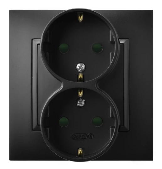 ARIA CZARNY METALIK GNIAZDO 2X SCHUKO Z PRZESŁONAMI ZACISKI ŚRUBOWE 16A 250V