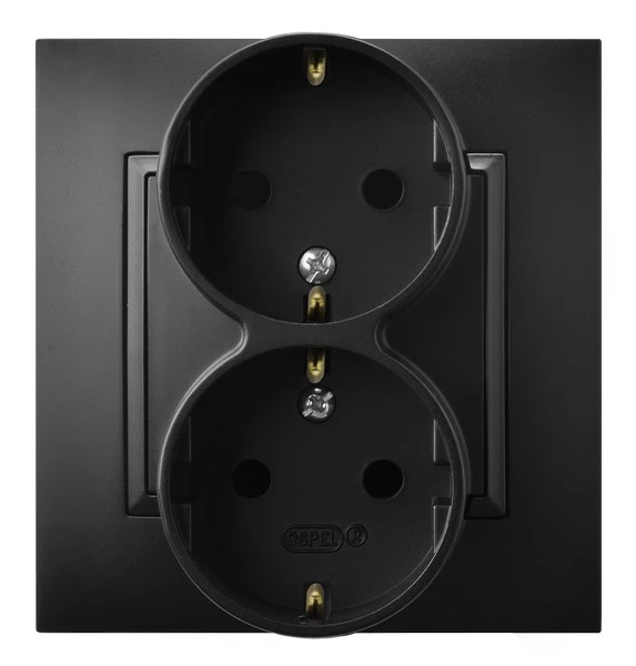 Gniazdo podwójne z uziemieniem schuko kompletne z ramką, czarny metalik ARIA o numerze katalogowym GP-2US/33 w kategorii Gniazda podtynkowe, Gniazda instalacyjne. Produkt wyprodukowany przez markę OSPEL, seria ARIA.
