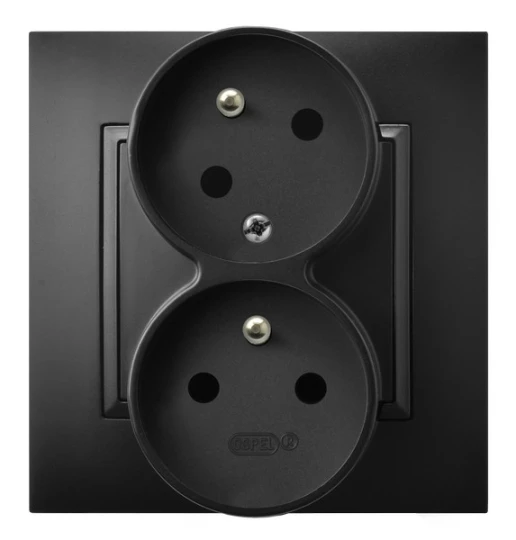 ARIA CZARNY METALIK GNIAZDO 2X Z/U Z FUNKCJĄ NIEZAMIENNOŚCI FAZ ZACISKI ŚRUBOWE 16A 250V