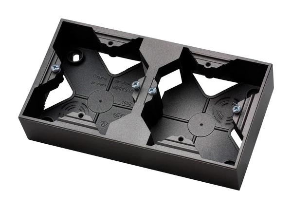Puszka instalacyjna podwójna, czarny metalik ARIA o numerze katalogowym PNP-2U/33 w kategorii Puszki natynkowe, Puszki instalacyjne. Produkt wyprodukowany przez markę OSPEL, seria ARIA.