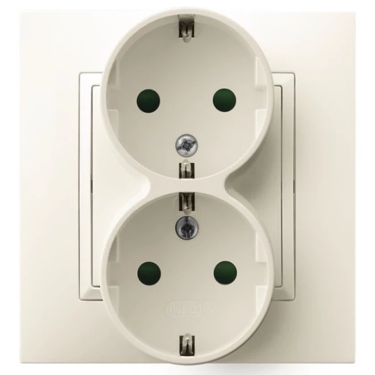 Gniazdo podwójne z uziemieniem schuko z przesłonami torów prądowych, kompletne z ramką, ecru ARIA o numerze katalogowym GP-2USP/27 w kategorii Gniazda podtynkowe, Gniazda instalacyjne. Produkt wyprodukowany przez markę OSPEL, seria ARIA.