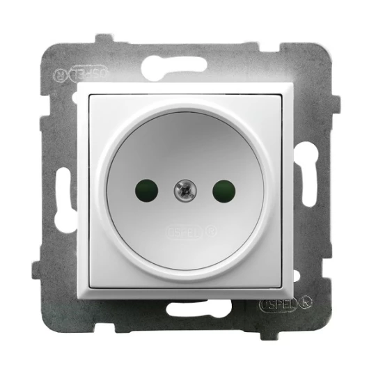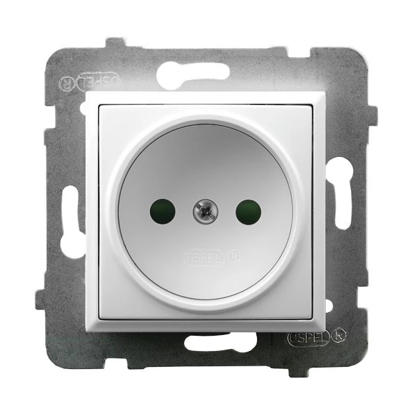 Gniazdo pojedyncze bez uziemienia z przesłonami torów prądowych, biały ARIA o numerze katalogowym GP-1UP/M/00 w kategorii Gniazda podtynkowe, Gniazda instalacyjne. Produkt wyprodukowany przez markę OSPEL, seria ARIA.