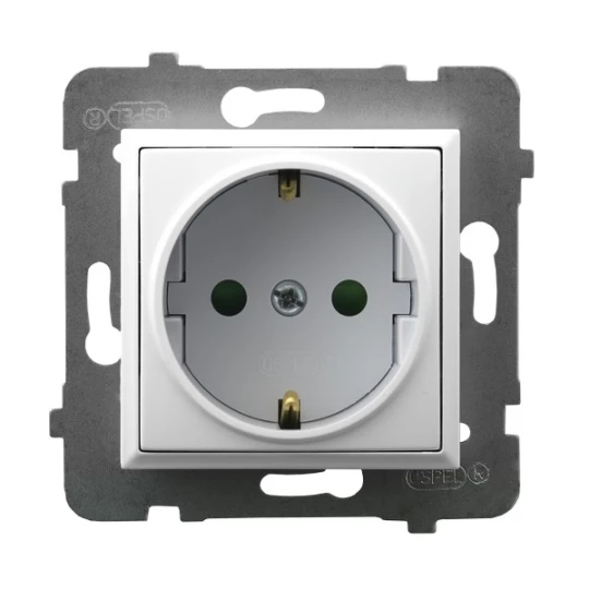 Gniazdo pojedyncze z uziemieniem schuko z przesłonami torów prądowych, biały ARIA o numerze katalogowym GP-1USP/M/00 w kategorii Gniazda podtynkowe, Gniazda instalacyjne. Produkt wyprodukowany przez markę OSPEL, seria ARIA.