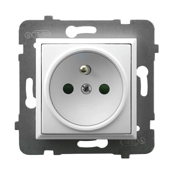 Gniazdo pojedyncze z uziemieniem z przesłonami torów prądowych, biały ARIA o numerze katalogowym GP-1UZP/M/00 w kategorii Gniazda podtynkowe, Gniazda instalacyjne. Produkt wyprodukowany przez markę OSPEL, seria ARIA.