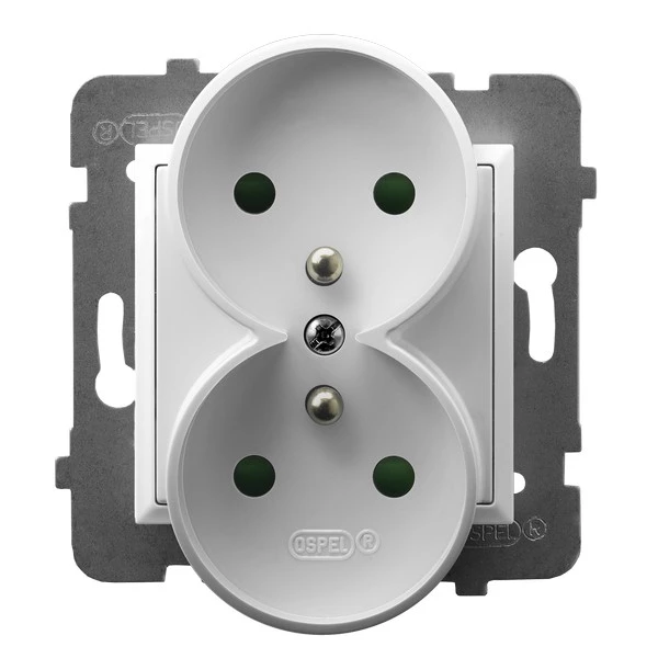 Gniazdo podwójne z uziemieniem z przesłonami torów prądowych, moduł bez ramki, biały ARIA o numerze katalogowym GP-2URZP/M/00 w kategorii Gniazda podtynkowe, Gniazda instalacyjne. Produkt wyprodukowany przez markę OSPEL, seria ARIA.