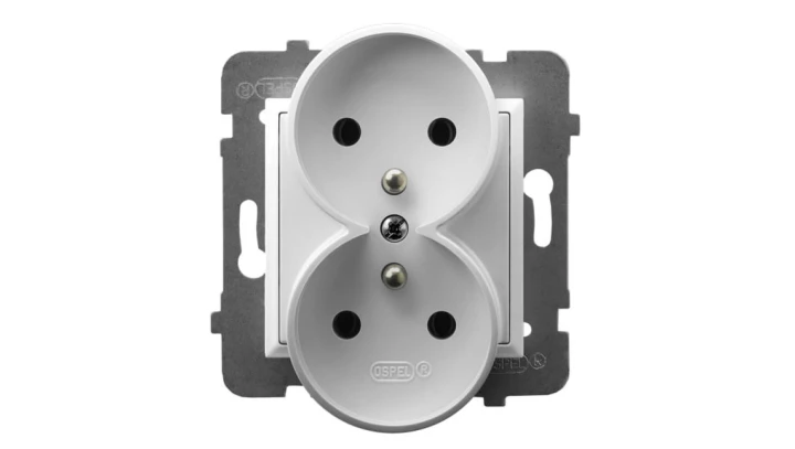 Gniazdo podwójne z uziemieniem moduł bez ramki, biały ARIA o numerze katalogowym GP-2URZ/M/00 w kategorii Gniazda podtynkowe, Gniazda instalacyjne. Produkt wyprodukowany przez markę OSPEL, seria ARIA.