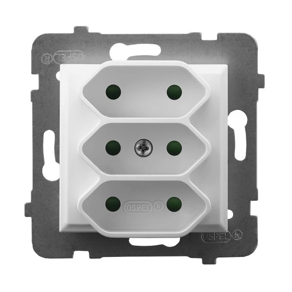 Gniazdo potrójne EURO z przesłonami torów prądowych, biały ARIA o numerze katalogowym GP-3UP/M/00 w kategorii Gniazda podtynkowe, Gniazda instalacyjne. Produkt wyprodukowany przez markę OSPEL, seria ARIA.
