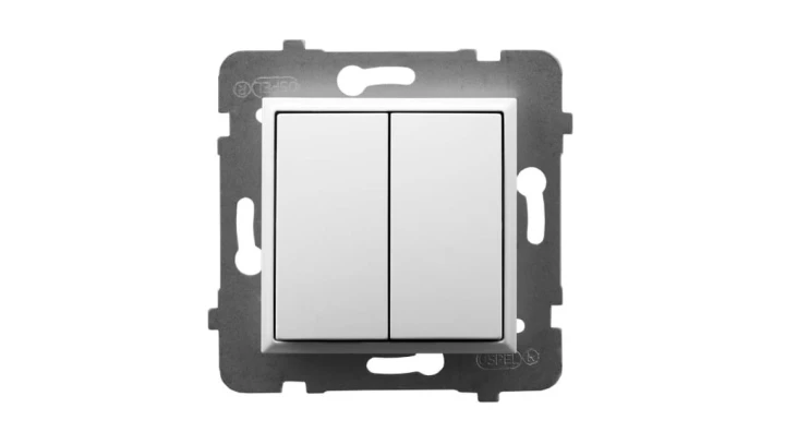 Łącznik podwójny schodowy, biały ARIA o numerze katalogowym ŁP-10U/M/00 w kategorii Łączniki podtynkowe schodowe, Łączniki schodowe. Produkt wyprodukowany przez markę OSPEL, seria ARIA.