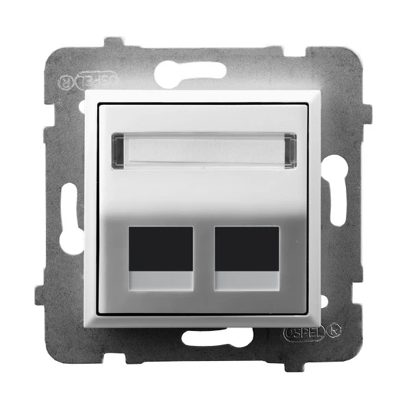 Obudowa gniazda podwójnego typu Keystone skośna, biały ARIA o numerze katalogowym GPK-2US/P/00 w kategorii Gniazda pozostałe, akcesoria podtynkowe, Łączniki i gniazda instalacyjne. Produkt wyprodukowany przez markę OSPEL, seria ARIA.