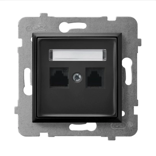 Gniazdo komputerowe podwójne, kat. 5e MMC, czarny metalik ARIA o numerze katalogowym GPK-2U/K/M/33 w kategorii Gniazda teleinformacyjne, multimedialne, Łączniki i gniazda instalacyjne. Produkt wyprodukowany przez markę OSPEL, seria ARIA.