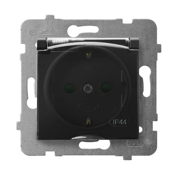 Gniazdo bryzgoszczelne z uziemieniem schuko IP-44 z przesłonami torów prądowych wieczko przezroczyste, czarny metalik ARIA o numerze katalogowym GPH-1USP/M/33/D w kategorii Gniazda podtynkowe, Gniazda instalacyjne. Produkt wyprodukowany przez markę OSPEL, seria ARIA.