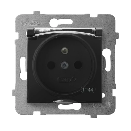 Gniazdo bryzgoszczelne z uziemieniem IP-44 wieczko przezroczyste, czarny metalik ARIA o numerze katalogowym GPH-1UZ/M/33/D w kategorii Gniazda podtynkowe, Gniazda instalacyjne. Produkt wyprodukowany przez markę OSPEL, seria ARIA.