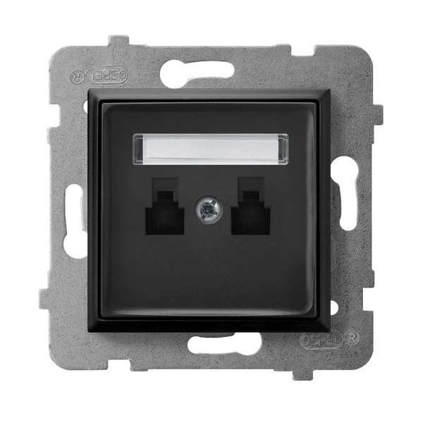 Gniazdo telefoniczne podwójne niezależne, czarny metalik ARIA o numerze katalogowym GPT-2UN/M/33 w kategorii Gniazda teleinformacyjne, multimedialne, Łączniki i gniazda instalacyjne. Produkt wyprodukowany przez markę OSPEL, seria ARIA.