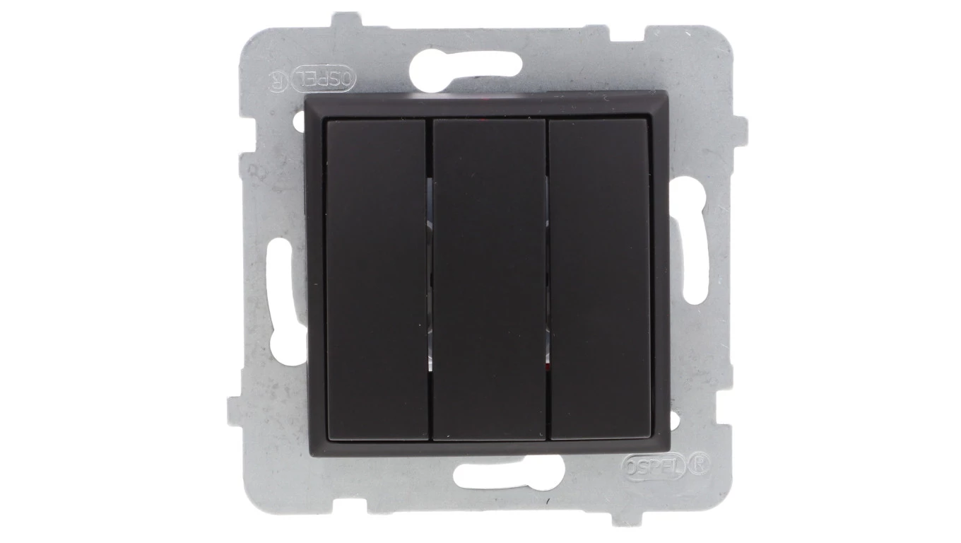 Łącznik potrójny, czarny metalik ARIA o numerze katalogowym ŁP-13U/M/33 w kategorii Łączniki podtynkowe wielobiegunowe, Łączniki wielobiegunowe. Produkt wyprodukowany przez markę OSPEL, seria ARIA.