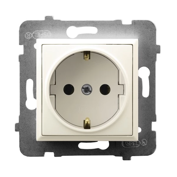 Gniazdo pojedyncze z uziemieniem schuko, ecru ARIA o numerze katalogowym GP-1US/M/27 w kategorii Gniazda podtynkowe, Gniazda instalacyjne. Produkt wyprodukowany przez markę OSPEL, seria ARIA.