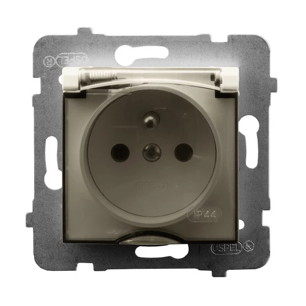 Gniazdo bryzgoszczelne z uziemieniem IP-44 wieczko przezroczyste, ecru ARIA o numerze katalogowym GPH-1UZ/M/27/D w kategorii Gniazda podtynkowe, Gniazda instalacyjne. Produkt wyprodukowany przez markę OSPEL, seria ARIA.