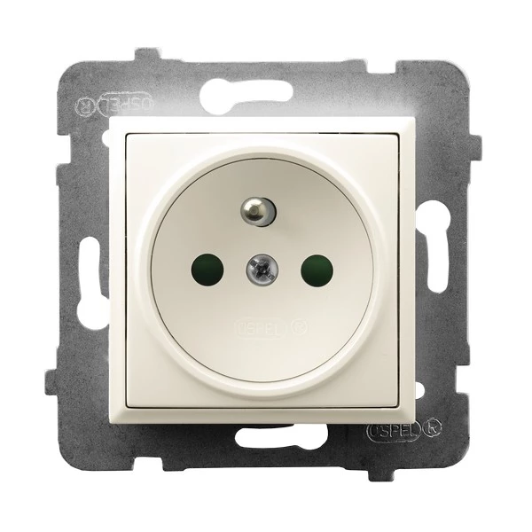 Gniazdo pojedyncze z uziemieniem z przesłonami torów prądowych, ecru ARIA o numerze katalogowym GP-1UZP/M/27 w kategorii Gniazda podtynkowe, Gniazda instalacyjne. Produkt wyprodukowany przez markę OSPEL, seria ARIA.