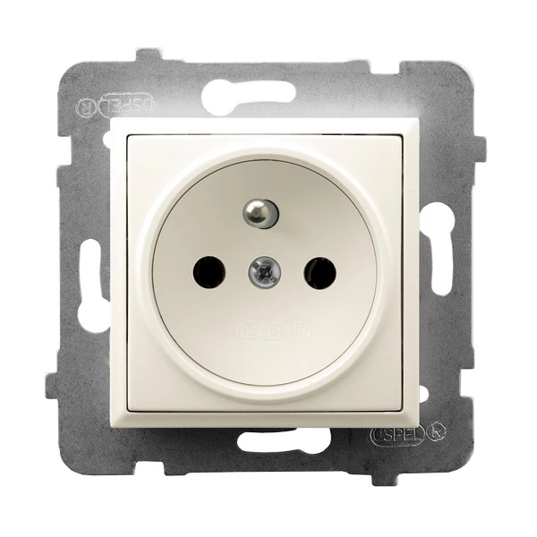 Gniazdo pojedyncze z uziemieniem, ecru ARIA o numerze katalogowym GP-1UZ/M/27 w kategorii Gniazda podtynkowe, Gniazda instalacyjne. Produkt wyprodukowany przez markę OSPEL, seria ARIA.