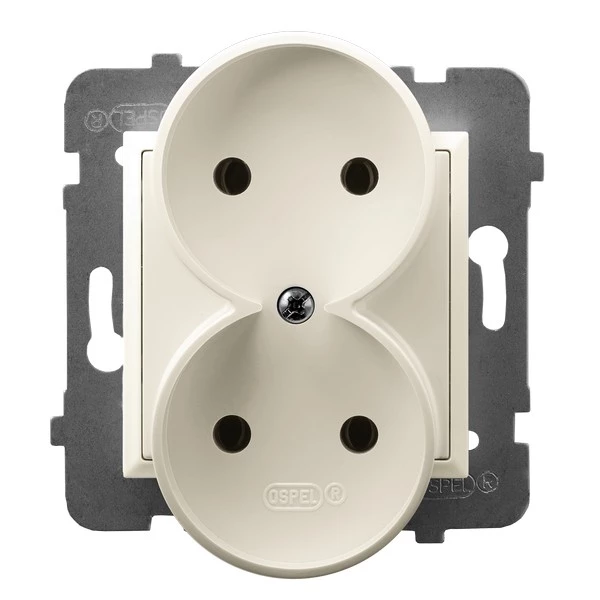 Gniazdo podwójne bez uziemienia moduł bez ramki, ecru ARIA o numerze katalogowym GP-2UR/M/27 w kategorii Gniazda podtynkowe, Gniazda instalacyjne. Produkt wyprodukowany przez markę OSPEL, seria ARIA.