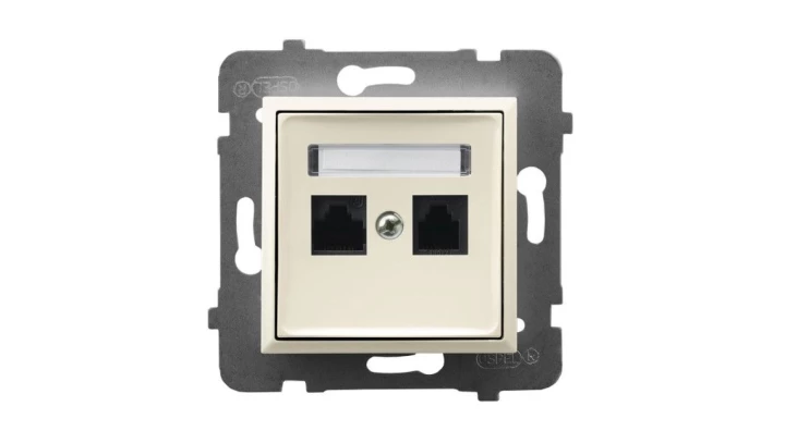 Gniazdo komputerowe podwójne, kat. 5e MMC, ecru ARIA o numerze katalogowym GPK-2U/K/M/27 w kategorii Gniazda teleinformacyjne, multimedialne, Łączniki i gniazda instalacyjne. Produkt wyprodukowany przez markę OSPEL, seria ARIA.