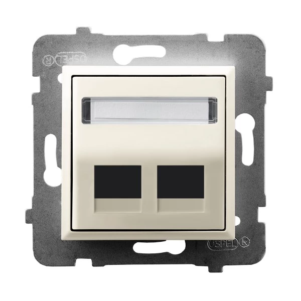 Obudowa gniazda podwójnego typu Keystone skośna, ecru ARIA o numerze katalogowym GPK-2US/P/27 w kategorii Gniazda pozostałe, akcesoria podtynkowe, Łączniki i gniazda instalacyjne. Produkt wyprodukowany przez markę OSPEL, seria ARIA.