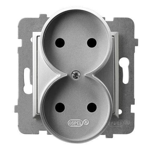 Gniazdo podwójne bez uziemienia moduł bez ramki, srebro ARIA o numerze katalogowym GP-2UR/M/18 w kategorii Gniazda podtynkowe, Gniazda instalacyjne. Produkt wyprodukowany przez markę OSPEL, seria ARIA.