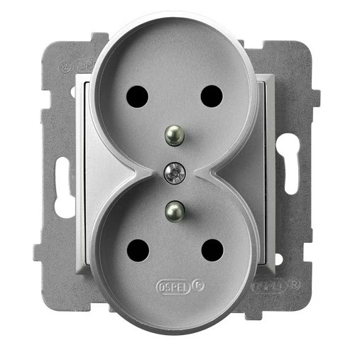 Gniazdo podwójne z uziemieniem moduł bez ramki, srebro ARIA o numerze katalogowym GP-2URZ/M/18 w kategorii Gniazda podtynkowe, Gniazda instalacyjne. Produkt wyprodukowany przez markę OSPEL, seria ARIA.