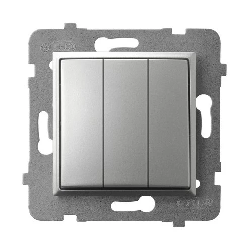 Łącznik potrójny, srebro ARIA o numerze katalogowym ŁP-13U/M/18 w kategorii Łączniki podtynkowe wielobiegunowe, Łączniki wielobiegunowe. Produkt wyprodukowany przez markę OSPEL, seria ARIA.
