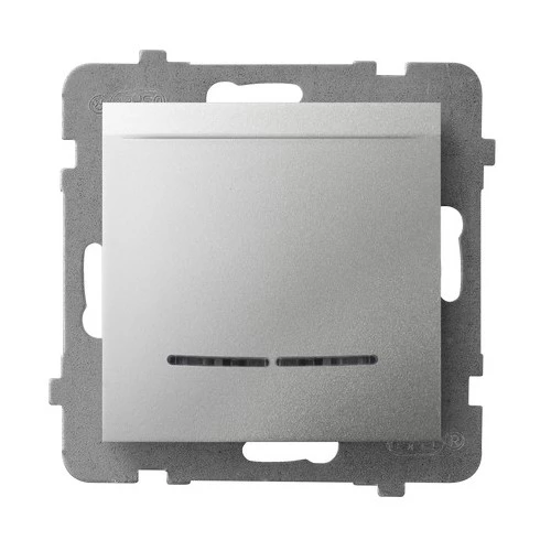 Łącznik hotelowy z podświetleniem pomarańczowym, srebro ARIA o numerze katalogowym ŁP-15US/M/18 w kategorii Łączniki hotelowe, Łączniki i gniazda instalacyjne. Produkt wyprodukowany przez markę OSPEL, seria ARIA.
