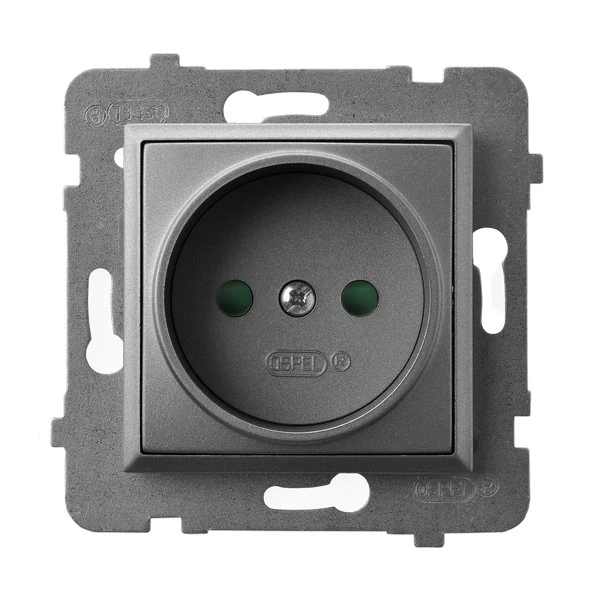 Gniazdo pojedyncze bez uziemienia z przesłonami torów prądowych, szary mat ARIA o numerze katalogowym GP-1UP/M/70 w kategorii Gniazda podtynkowe, Gniazda instalacyjne. Produkt wyprodukowany przez markę OSPEL, seria ARIA.